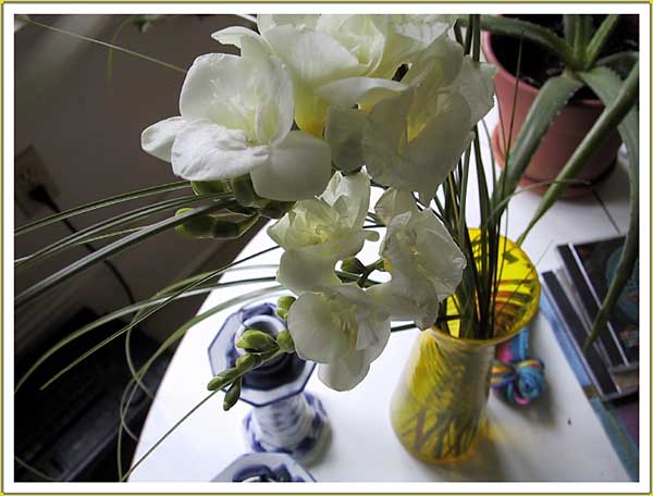 The vase and flowers are so typical of that house - it seemed important to not forget that and so I photographed them. Everywhere there were little tableaux to be discovered that were harmonious in shape, colour and form - that looked casual but were not. These arrangements were never subverted by obvious clues pointing to their constructed nature, but I never doubted for a moment that they were carefully organized and intended to be seen.