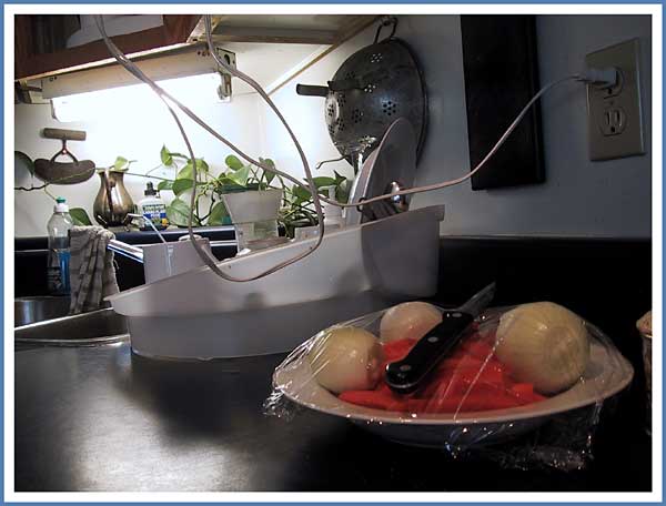 I think I ate soup and then cleaned up immediately while marvelling at how neat everything seemed in her kitchen. I ate it quietly being careful to not disturb her while she was asleep - or to let her have any idea how late it was when I came in. I was really tired that evening and I had this creepy feeling that I was a burglar. In my house I would never leave onions overnight on the counter - wrapped in cello or not.