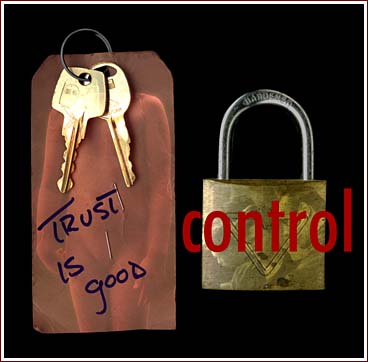 The text in this image refers to the chilling slogan "trust is good - but control is better" attributed to Felix Drezhinsky - the man responsible for security in the early days of the soviet state. This implications of this have always made my blood run cold even though I have never experienced the tyranny such a statement implies. I am lucky to live in Canada where the exercise of "state security" is not totalitarian and is tempered by democratic processes. I cannot explain this work completely to you, but amongst other things, it is an argument against the crude "steering" of individuals towards institutional ideals. It is also an experimental, exotic "advertisment " addressed first to me (and then to others) which uses associative, poetic strategies in an effort to find a voice. The superimposed images juxtapose an individual and a workshop scene. |