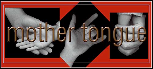 This image is about a number of different bonds that help to form a community. Language is of course a major mechanism that gives a community a sense of self. The text "mother tongue" is intended to make that clear, the hands are also language. As an example, the deaf community has a long history of association with this community center and the central image is the generic "I love you" sign in American Sign Language. The woman and child's hands that make this image were not made from a photograph, instead they just placed their hands on the scanner. |